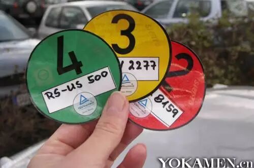 在欧洲地区很多国家对于环境保护有着积极地态度,比如德国,自从10年起,所有进入慕尼黑,柏林,斯图加特等城市的车辆必须拥有环保标签,该环保标签分为红黄绿三种颜色,对于不达标的车辆不予派发该标签,如果您驾驶未配备环保标签的汽车驶入慕尼黑,那么您将面临60美元并驱逐出城市的处罚。